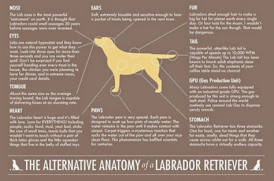 - Labrador Retrievers love, love, love to eat, and become obese very quickly if overfed. Limit treats, give your Lab plenty of exercise, and measure out regular meals rather than leaving food out all the time. And be warned that the Lab's large appetite extends to people food and even inedible items. Labradors will forage in garbage, counter surf, and can make a meal out of chewed-up items like children's toys.